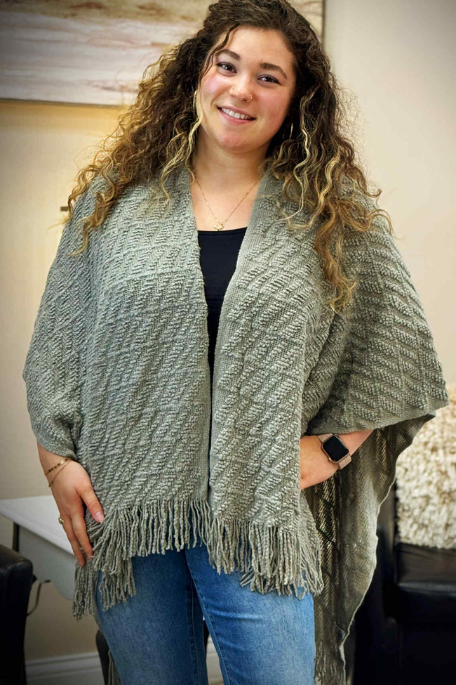 This gorgeous gray tassel poncho is just what you need! It's so versatile and will easily take you from season to season. Fit is one size fits most.
