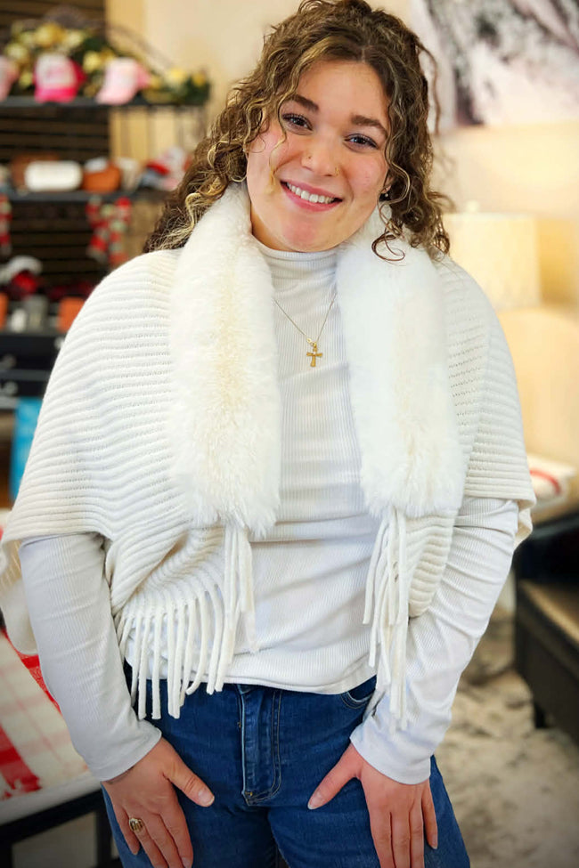All I can do is tell you about this gorgeous faux fur poncho!! It's so light weight and comfy you'll love wearing it everywhere! Fit is one size fits most.